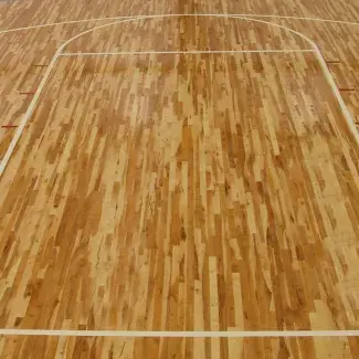 Connor Sports Neoshok is a floating sports floor system with high resiliency and uniformity consisting of North American wood strips, a vapor barrier, NeoShok resilient pads and wood subflooring.